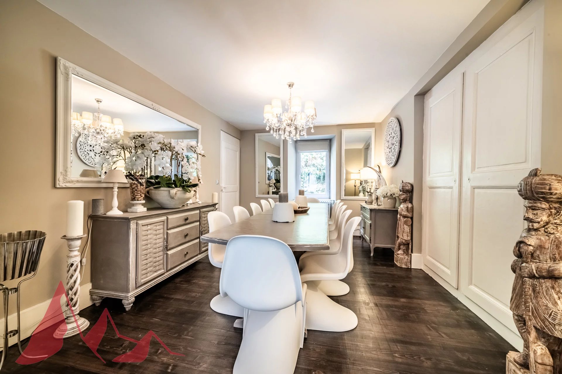This stunning and beautifully renovated townhouse is located in La Moussiere square, a delightful setting and just a 5-minute walk to the centre. With its high ceilings, the townhouse was elegantly renovated in 2018 into a lovely 300 sqm house and used local materials to keep the traditional and authentic charm.