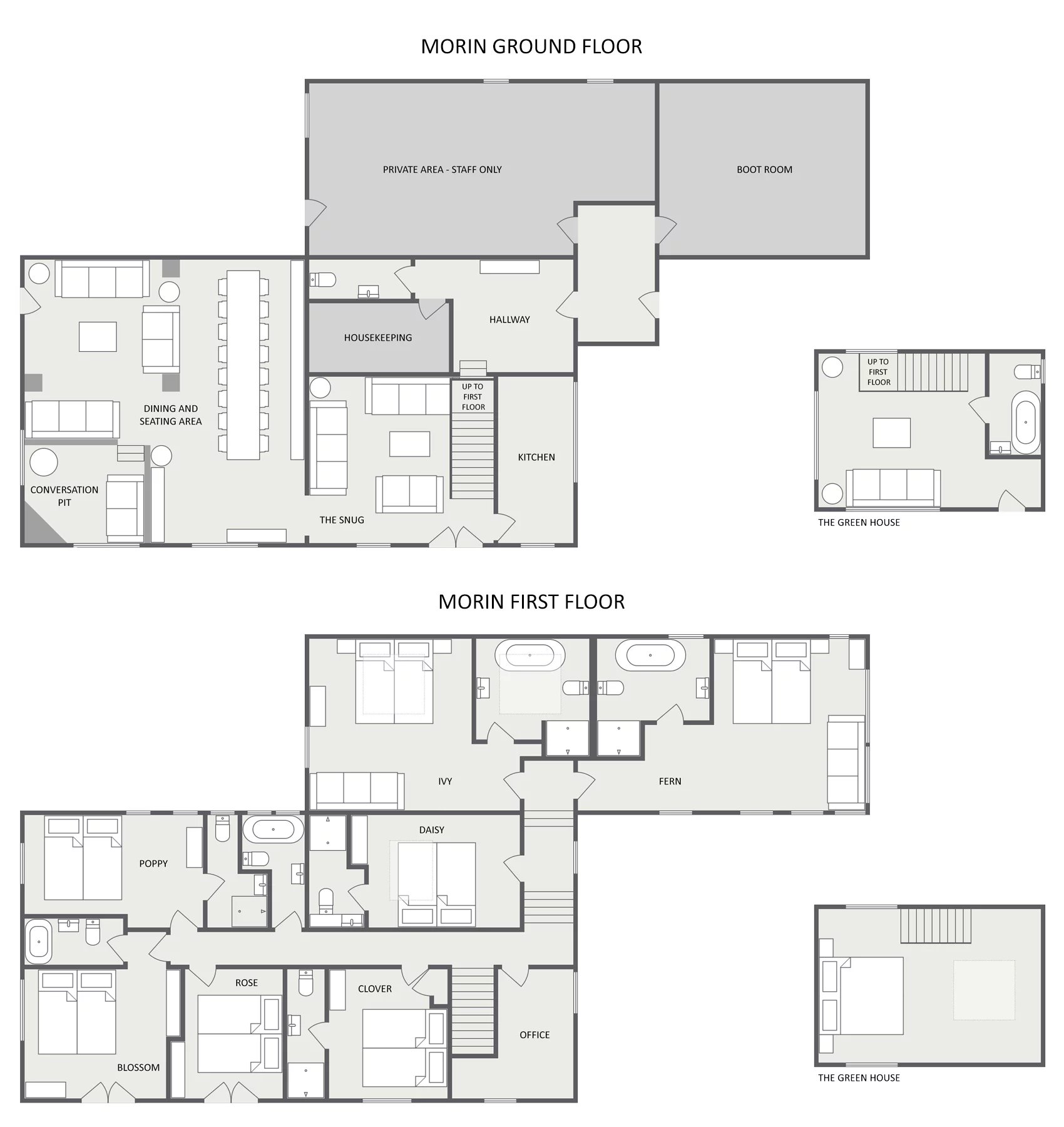 The first floor has a choice of 7 bedrooms ensuite, each with its own individual character. Plans are attached for you to look through.