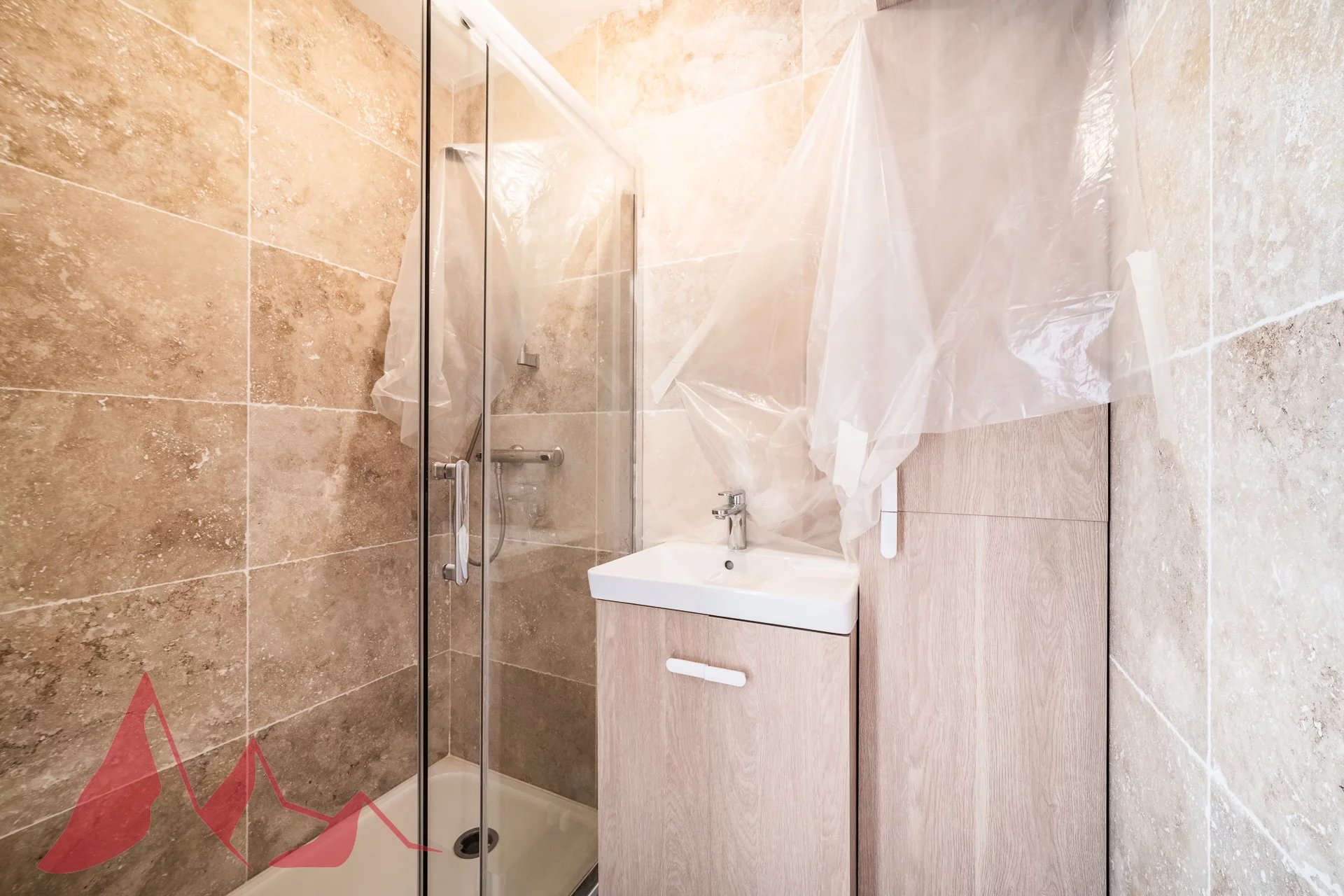 The recently fully renovated apartment comprises an entrance hall, a living room with open-plan kitchen opening onto the balcony, two double bedrooms, a bathroom and a separate toilet.